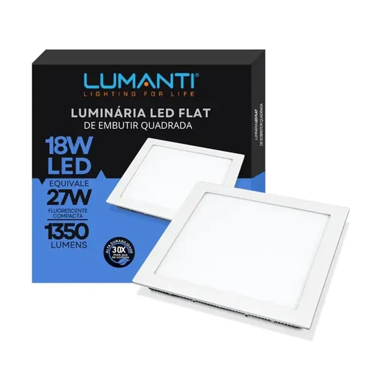 A Luminária LED Flat 18W Quadrada da Lumanti combina design clean com excelente desempenho para iluminação geral em ambientes internos. Sua estrutura ultrafina de apenas 7,5mm permite um acabamento discreto e moderno no teto. Com fluxo luminoso de 1.350 lúmens, é ideal para escritórios, salas, corredores, cozinhas e áreas de circulação.