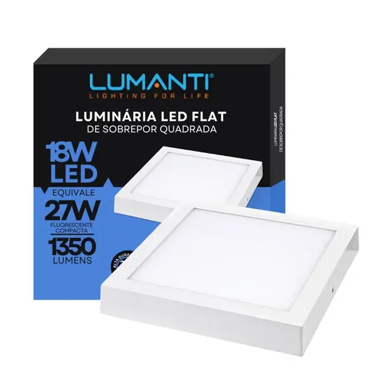 A Luminária LED Flat 18W de Sobrepor da Lumanti une modernidade, economia e praticidade em um único produto. Com corpo compacto e discreto, permite instalação direta em teto sem a necessidade de cortes, sendo ideal para ambientes residenciais, comerciais e corporativos.